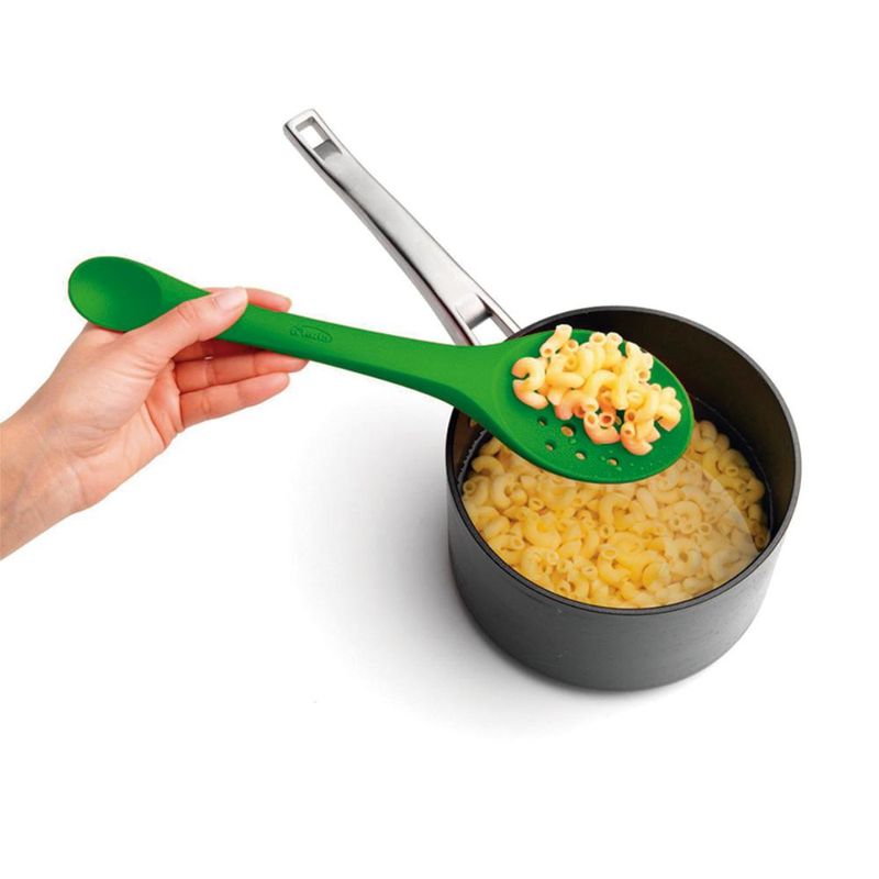 Colher Culinária 2 em 1 Perfurada Verde Profissional Chef'nVocê está cansado de utensílios de cozinha que não são práticos e não facilitam sua vida na hora de preparar suas receitas? Então você precisa conhecer a Colher Culinária 2 em 1 Perfurada Verde Profissional da Chef'n.