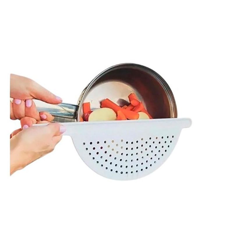 Escorredor em formato de meia lua da Decor-útil é ideal para escorrer macarrão, legumes, separar caldos e o que mais precisar.