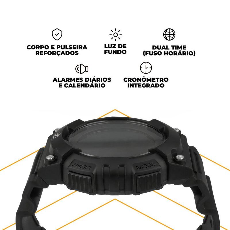 E isso não é tudo!Ideal para viagens ao exterior, com a funcionalidade Dual Time, você nunca estará desatualizado, não importa o lugar do mundo em que estiver, configure uma segunda hora de outro fuso horário em seu relógio e visualize as horas de dois países diferentes em sua tela de forma prática. Cada elemento do Tech Armor foi projetado para elevar sua experiência, desde a sua estética até suas especificações precisas e abrangentes.